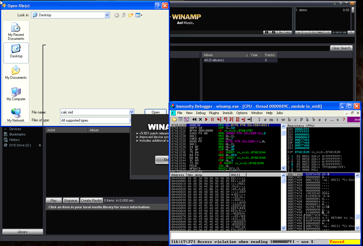Winamp 5.6 Arbitrary Code Execution in MIDI Parser