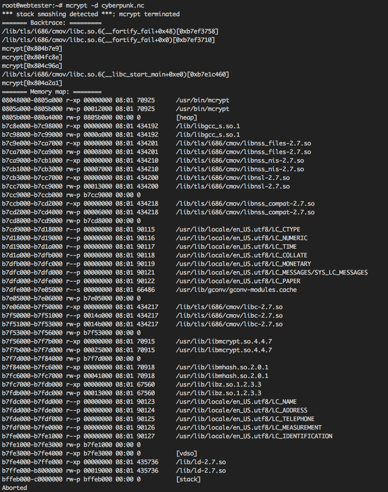 # mcrypt <= 2.6.8 stack-based buffer overflow poc